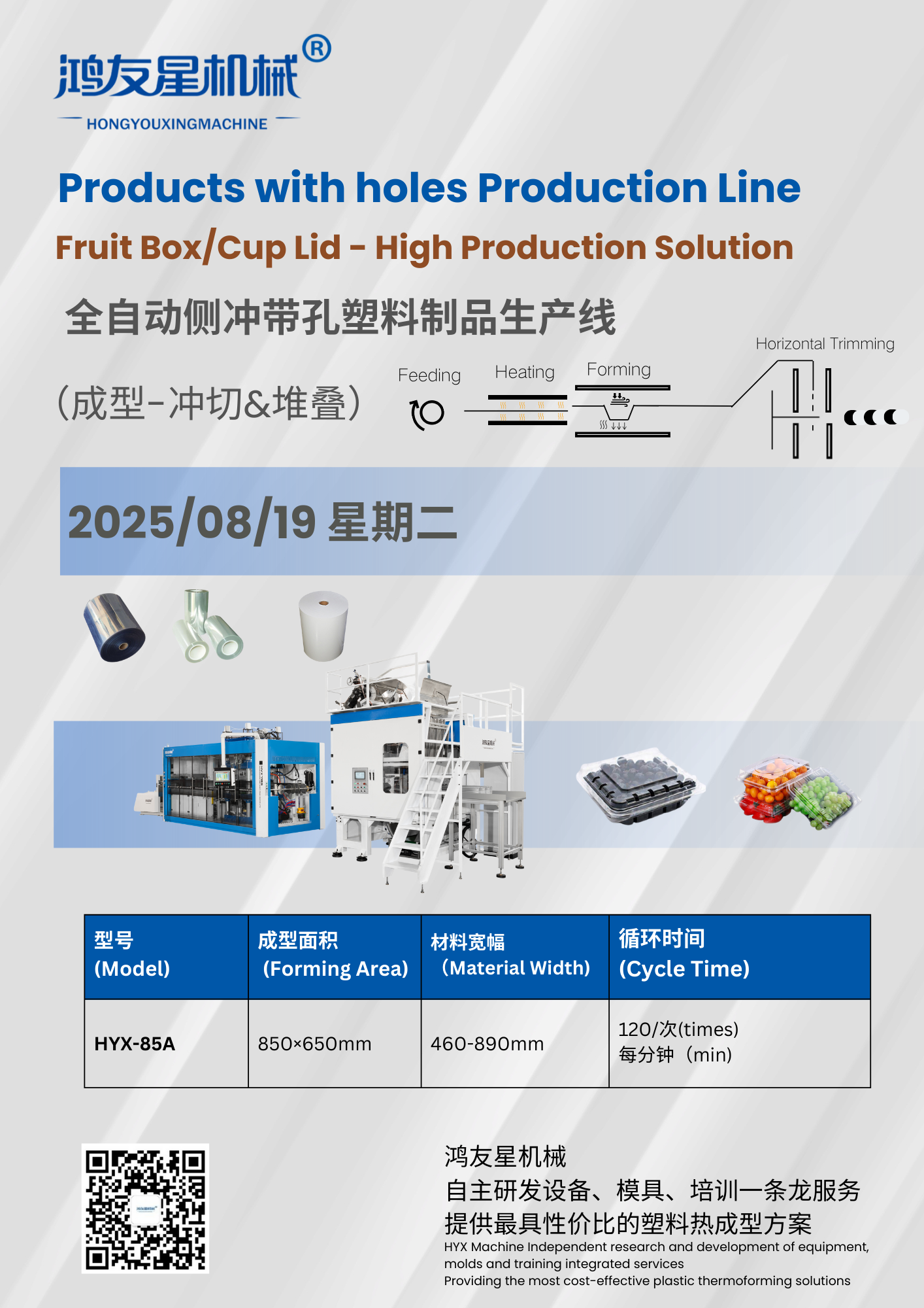 เหมาะสำหรับผลิตฝาถ้วย กล่องสตอเบอรี่ และกล่องบลิสเตอร์ที่มีรูด้านข้างและก้นขวด เครื่องขึ้นรูปตุ่ม (หรือที่รู้จักในชื่อเครื่องทดสอบพุพอง/เครื่องทดสอบการเจาะ) เป็นอุปกรณ์อัตโนมัติขั้นสูงที่สามารถตอบสนองข้อกำหนดด้านบรรจุภัณฑ์ที่ซับซ้อน และมีการใช้กันอย่างแพร่หลายโดยเฉพาะในอุตสาหกรรมบรรจุภัณฑ์อาหาร เครื่องจักรเหล่านี้ไม่เพียงแต่รองรับการขึ้นรูปพุพองแบบธรรมดาเท่านั้น แต่ยังสร้างตำแหน่งรูต่างๆ อย่างแม่นยำ เช่น รูด้านข้างและด้านล่าง เพื่อตอบสนองความต้องการด้านการทำงานของบรรจุภัณฑ์ที่หลากหลาย